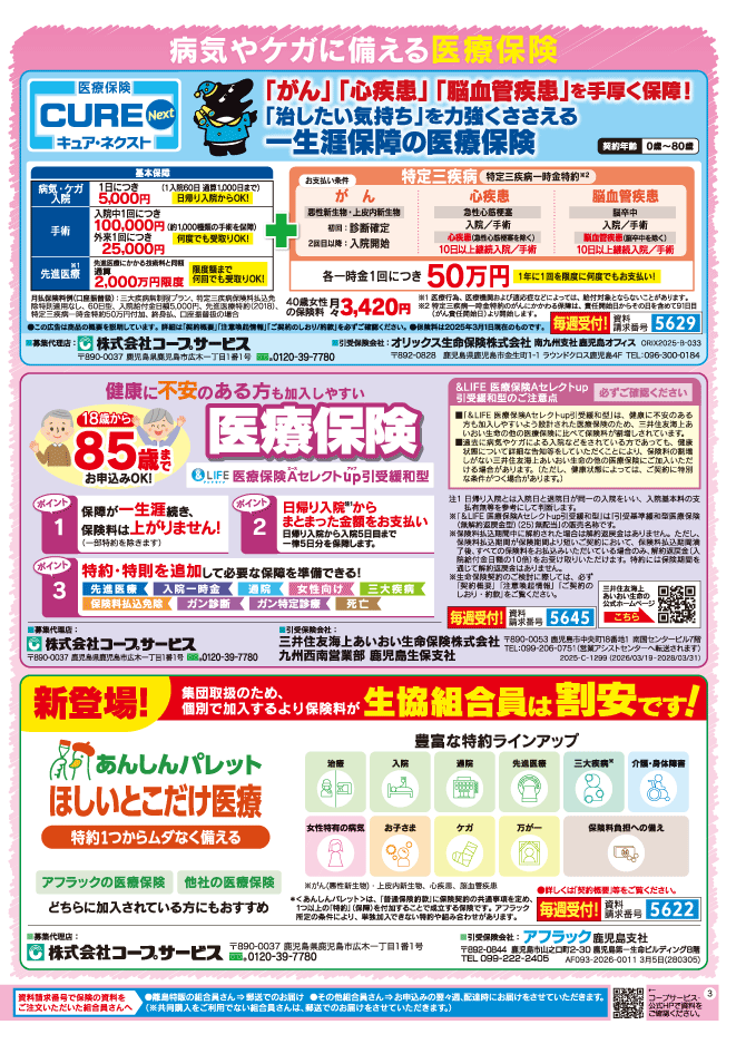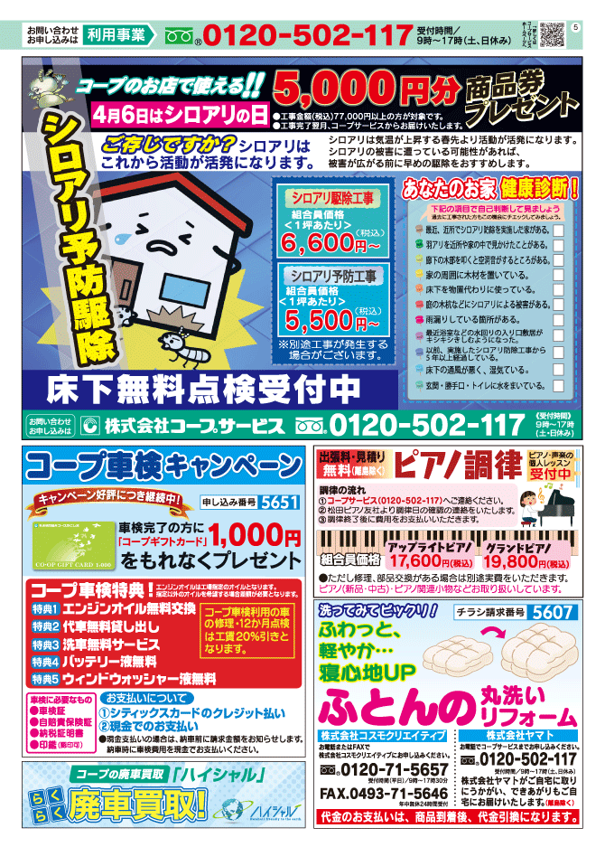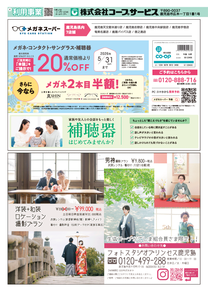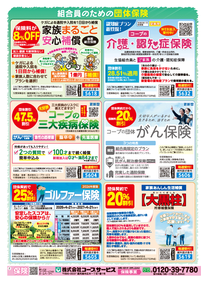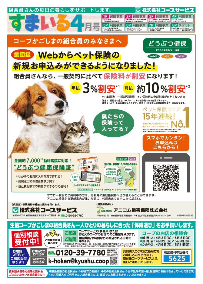 《4月号》 「最新号」 生活情報誌「すまいる」では、保険・利用の各事業のお知らせを掲載しています。 共同購入利用の組合員さんへは、配達カタログと共に月1回、配布しております。また、コープの各店舗にも配布しております。ご希望の方は、各店舗のカウンターにお問い合わせください。 すまいる最新号のダウンロードはこちらから1P 2P 3P 4P 5P 6P 7P 8P すまいる